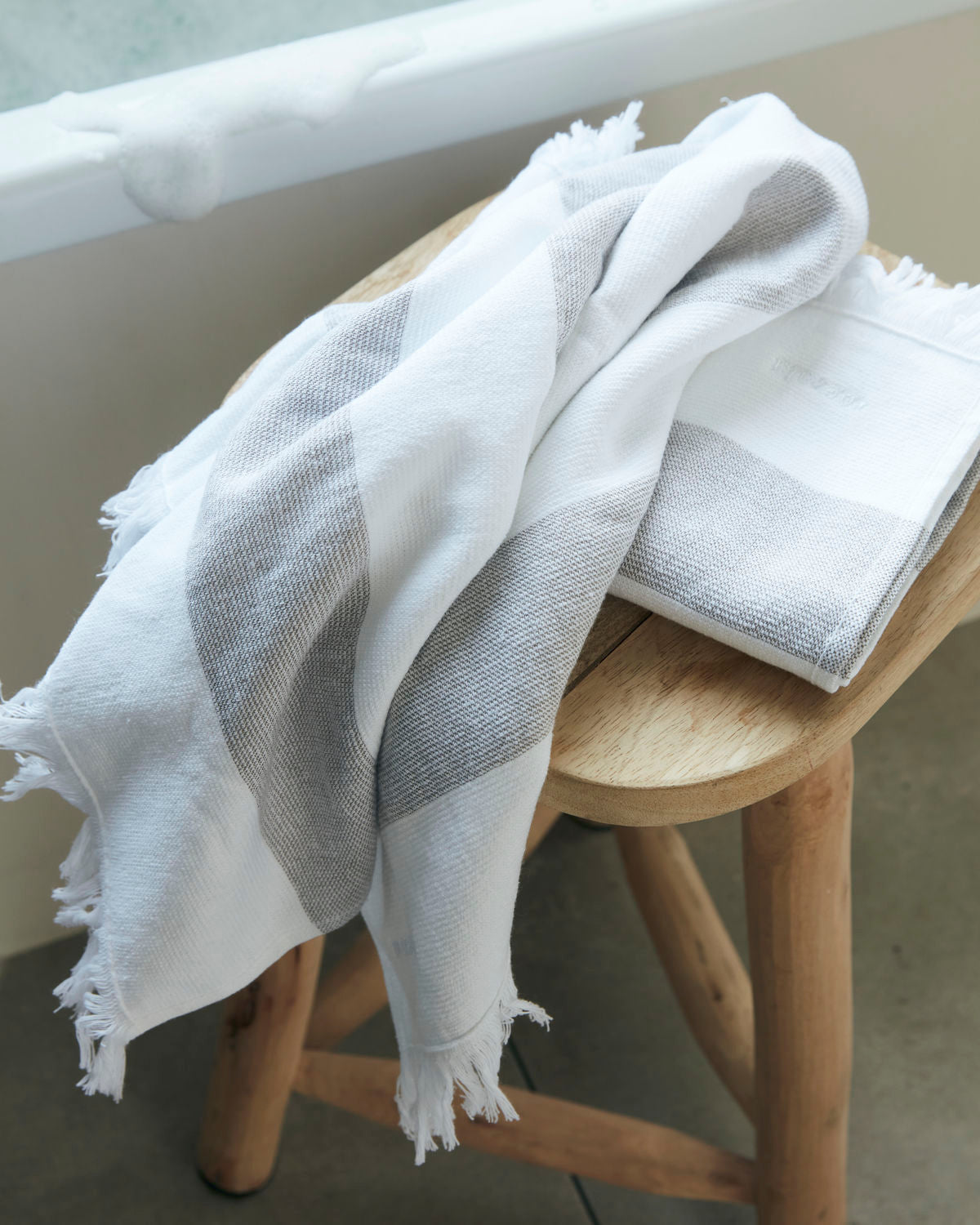 Njut av det otroligt mjuka frotté-materialet på denna uppsättning med 2 bomullshanddukar från Meraki. Handdukarna heter Barbarum och ger en lugn känsla i badrummet tack vare de neutrala färgerna. De vita och bruna ränderna är detaljer som är så pass subtila att de smälter in i din inredning, men de sticker samtidigt ut tillräckligt mycket för att göra skillnad. Den ena sidan ha en normal vävning medan den andra har en frottéväv för att ge dig optimal komfort. De fina fransarna kompletterar känslan av vardagslyx.